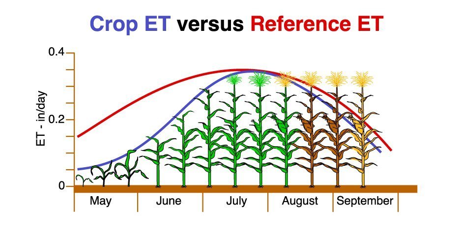 Thus, if reference evapotranspiration is known, crop coefficients for corn or other crops can be used to quickly estimate evapotranspiration values.